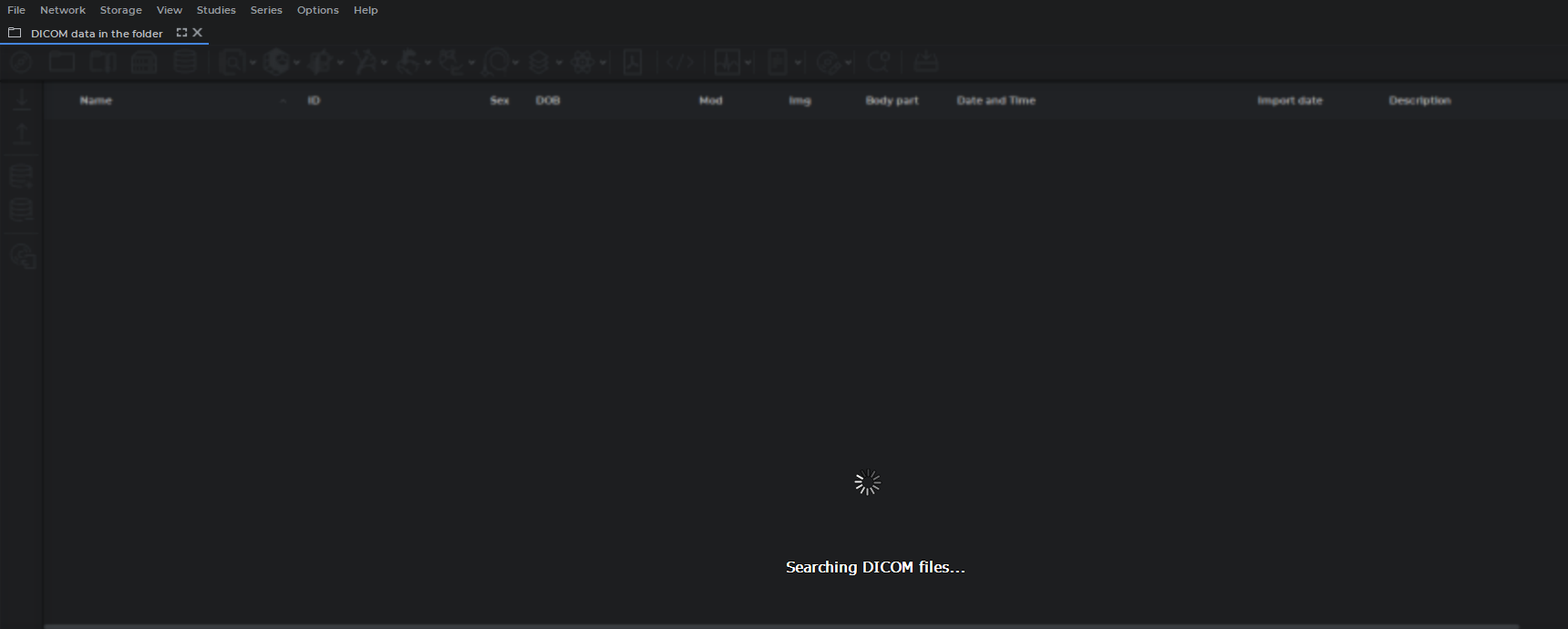 Warning! Loading a large number of studies may take a long time. Do not use this Viewer tab during import to avoid interrupting the process. Do not close the application, shut down the device, or put it to sleep.